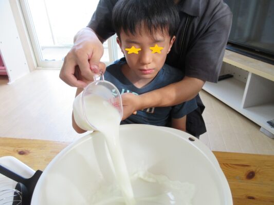 牛乳をはかったら入れまーす🥛